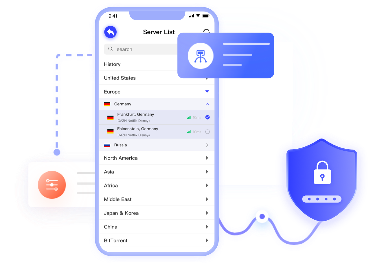 Connect to the global network and bypass any restrictions. You can watch restricted content anywhere, anytime on your Android devices.